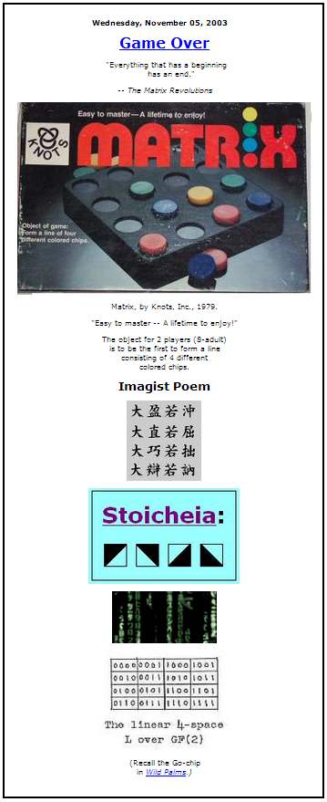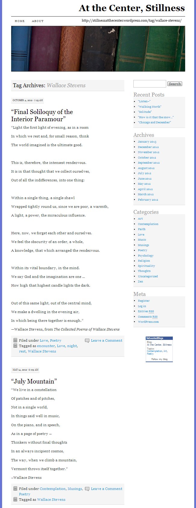 See also two poems by Wallace Stevens and some images related to yesterday's Log24 post.