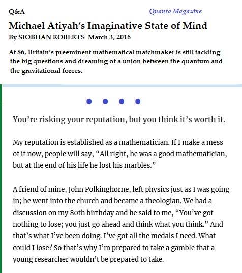 — Sir Michael Atiyah, quoted here on April 4, 2016