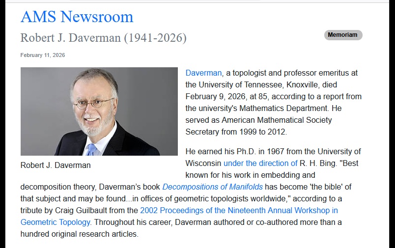 Cube Space as well as the post below from the date of Daverman's death —