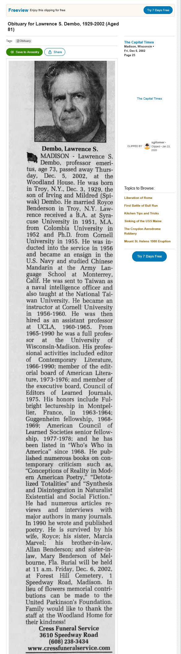 — New York Times obituary today