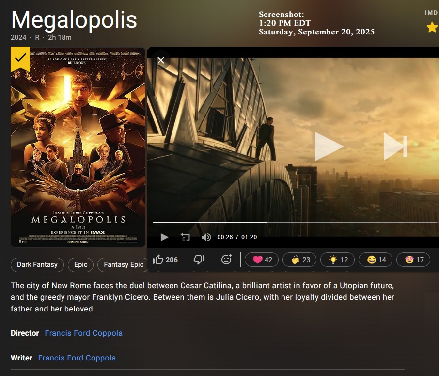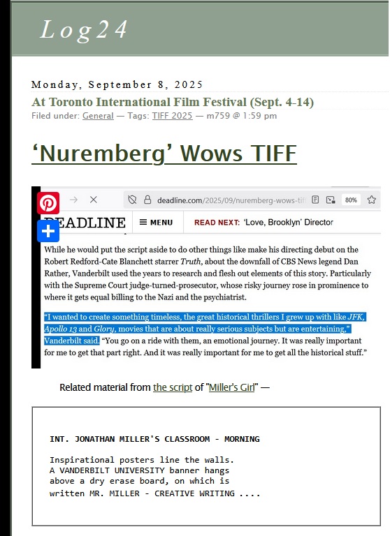 Cinematic Offering for Toronto Film Festival . . .