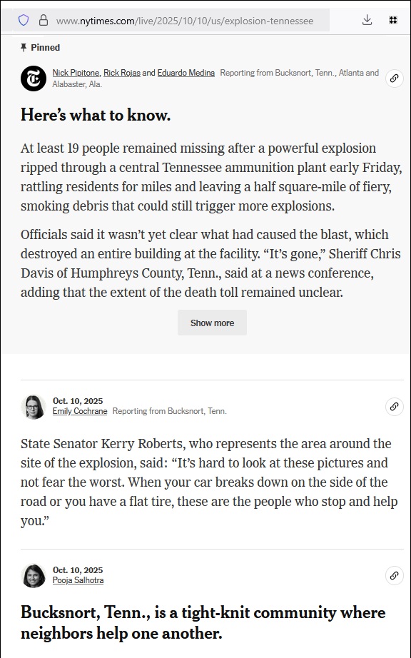 Update of 6:58 PM EDT Oct. 7 . . .