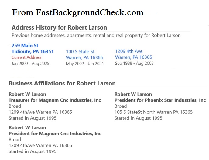 North Warren, Pennsylvania.